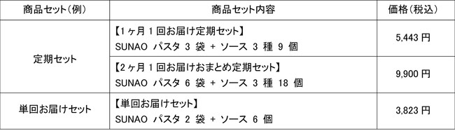 「SUNAO パスタ」・「SUNAO ソース」商品概要