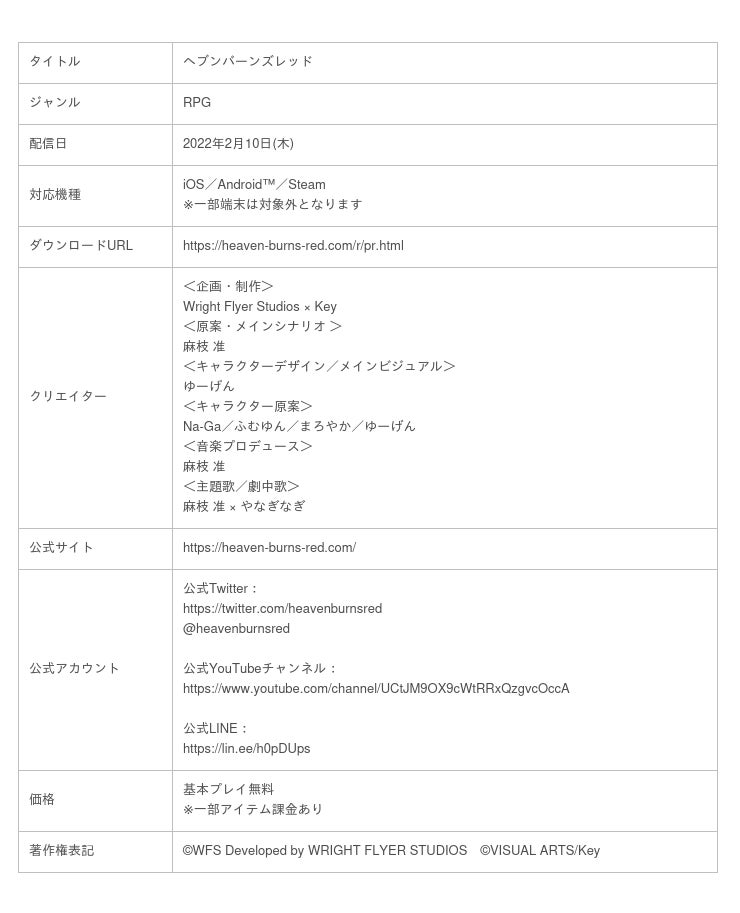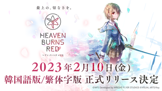 株式会社WFS(本社:東京都港区、代表取締役社長:柳原 陽太、グリー株式会社100%子会社)のWright Flyer Studiosと、株式会社ビジュアルアーツ(本社:大阪府大阪市北区、代表取締役:馬場 隆博)のKeyが贈るドラマチックRPG『ヘブンバーンズレッド』は、1周年を迎え初のゲーム内コラボイベントを開催します。本作の原案・メインシナリオを手がける麻枝 准が原作・脚本を担当し人気を博したオリジナルテレビアニメ『Angel Beats!』との初コラボを2月10日(金)より開始しました。