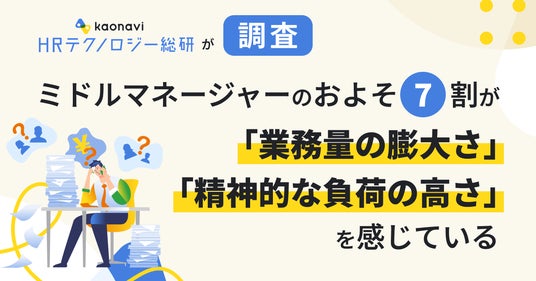株式会社カオナビ(本社:東京都渋谷区、代表取締役社長CEO:佐藤 寛之、以下:当社)が運営する、組織・人事領域をテーマにした調査・研究機関「カオナビHRテクノロジー総研」は、「ミドルマネージャーに関する調査」を実施しました。