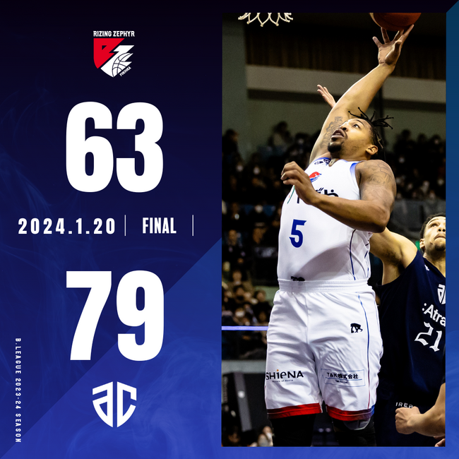 2024年1月20日(土)に開催されました【アルティーリ千葉vs.ライジングゼファーフクオカ】において“A千葉79-63福岡”の結果となりましたことお知らせいたします。