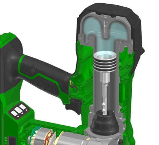 エアスプリング方式で、ガスカートリッジ不要の安定した打込みを実現