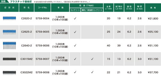 ※1 2025年12月現在。国内向け製品(コードレスコンクリート釘打機)において