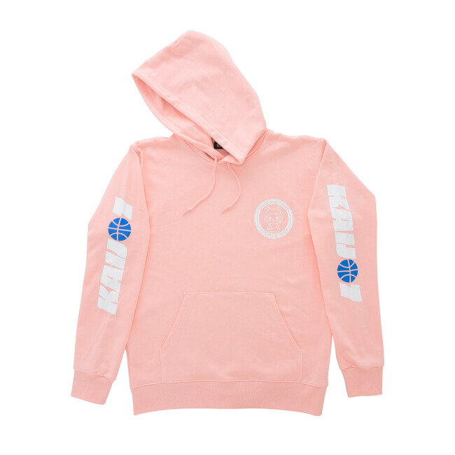 ピンクに青のバイカラーが映える、スポーティーなパーカーとなっております。