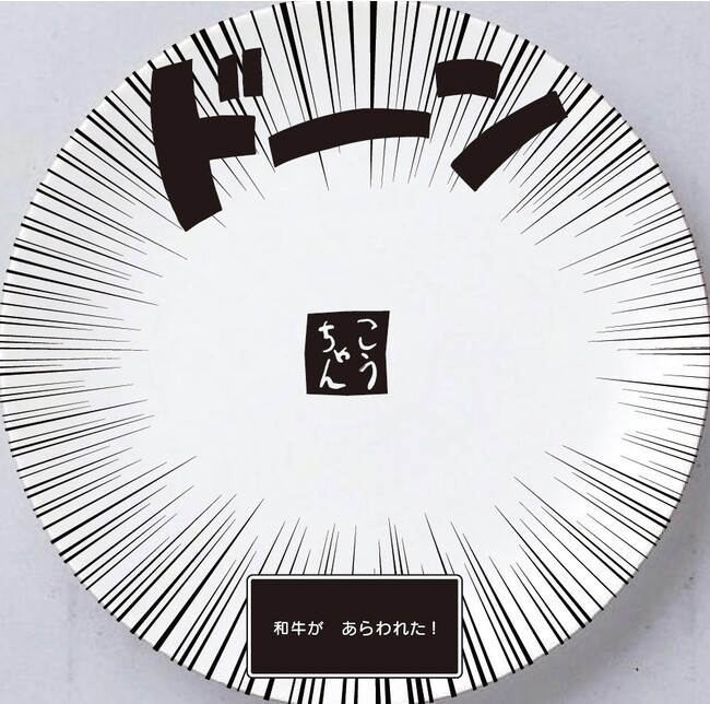 また和牛のお皿も漫画調のお皿に盛るなど各メニューに遊び心を加えており、印象に残るお店作りを意識しております。ぜひ、『目で見て楽しい・食べて美味しい』のこうちゃん独自の世界観を感じていただけると幸いです。