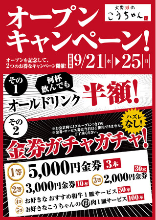 オープン日9/21~26日までの6日間でオープンキャンペーンを実施させていただきます。