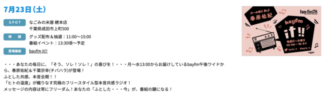 登場番組:bayfm it!!(春原佑紀&千葉宗幸(チバハラ))