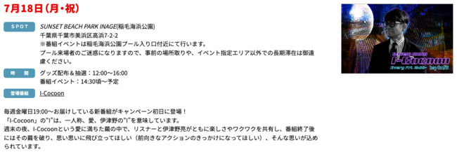 ※番組イベントは稲毛海浜公園プール入り口付近にて行います。