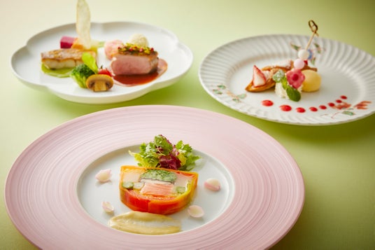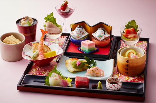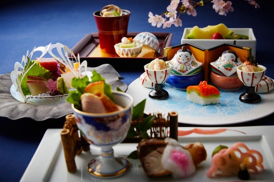 展示企画で磁器を取り上げたのを機に、今回初めて「伊万里鍋島焼」の産地に隣接した佐賀県有田町の「有田焼」と、節句料理を融合させた特別メニューを計4店舗のレストランでご提供。また、ホテル内のバー2店舗でも「有田焼」の器を使用し、日本酒バー<天乃川>では「有田焼」の産地である佐賀県の日本酒飲み比べ、メインバー<ブリアン>ではひなあられがトッピングされたノンアルコールカクテルなど、今回のテーマをイメージした期間限定メニューをご用意いたします。