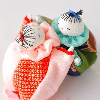 1.『観る』本絹古布(ほんけんこふ)のつるし飾りと真多呂人形の段飾り