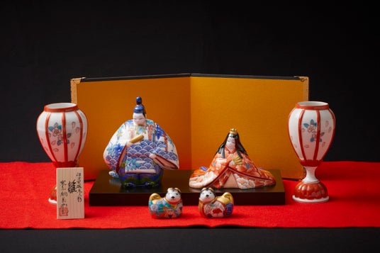 国内屈指の焼き物の技術を継承している「伊万里鍋島焼」の産地から、磁器のお内裏様や、ひな飾りの一つで犬をかたどった入れ物「狗筥」を展示します。
