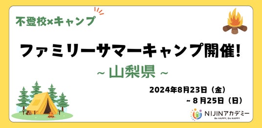 株式会社NIJIN(本社:東京都江東区、代表取締役:星野達郎)が運営する不登校オルタナティブスクール『NIJINアカデミー』は、8月23日(金)~8月25日(日)に不登校の小中学生を対象としたファミリーサマーキャンプ(山梨県)を開催致します。