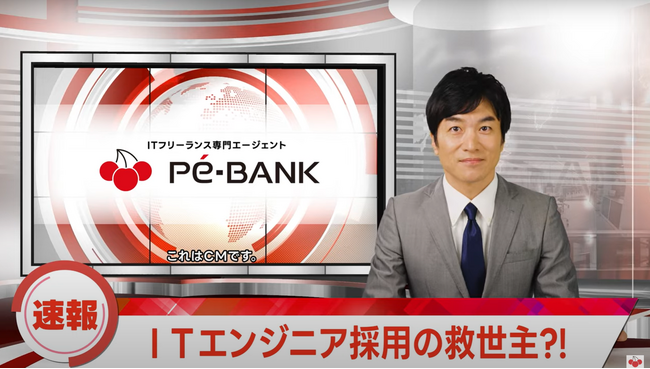 ITエンジニアの新しい働き方を提案する株式会社PE-BANK(東京都港区/代表取締役・高田 幹也)は、このたび新CM「速報!ITエンジニア探しの救世主」篇を9月1日(金)より公開いたします。
