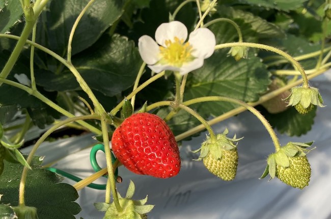 愛知県みよし市丸進ファームで収穫されたブランド苺「よつぼし」は、光沢のある鮮やかな赤色で、濃厚な甘酸っぱさが特長です。「甘味」、「酸味」、「風味」がよつぼし級に「美味しい」が名前の由来とされています。
