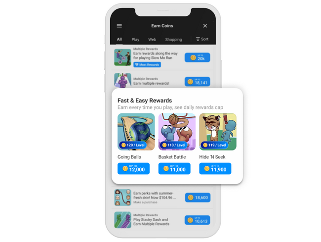 幅広いゲームジャンルにまたがるプレイヤーの好みにぴったりな、短時間で素早く高頻度なリワード付与により、コンバージョン率を引き上げます。