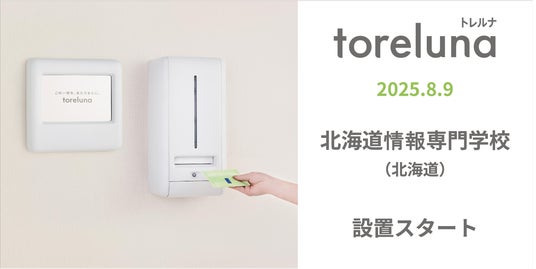 株式会社ネクイノ(大阪市北区、代表:石井 健一)は、トイレの個室で生理用ナプキンを常備し無料で提供するサービス「toreluna(トレルナ)」(以下 トレルナ)を、北海道情報専門学校へ設置し、サービスの提供を開始いたしました。