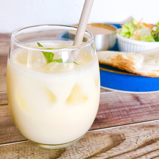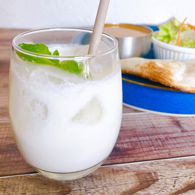 インド発祥のヨーグルトベース飲料のことです。さっぱり爽やかな飲み心地なのでスパイシーな料理との相性が良く、スパイスカレーを食べた後に飲むと辛さを中和してくれ、口の中をスッキリとさせてくれる効果があります。爽やかな乳飲料ですので暑い夏にピッタリです。