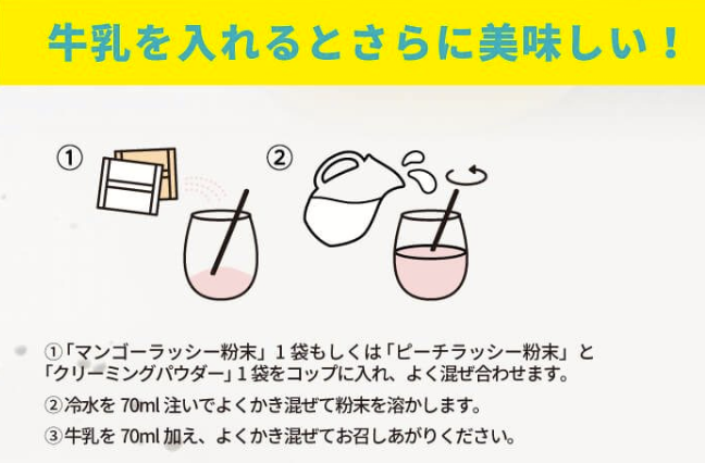 水70mlと牛乳70mlの配合がオススメです。