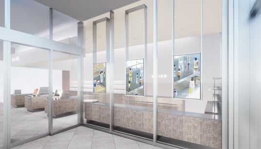 SHIRO ミナモア広島店では、製品が並ぶディスプレイ什器の側面の表層を、デニム製造の過程で生まれる上質な原綿の残渣で彩り、扉やその表層部分を分解できる仕様にすることで、つくった先の未来も考えます。この什器の一部は、お客様とともにワークショップの中で仕上げを行いました。そして、壁面のやわらかなベージュの色合いをつくり出すのは、SHIROの限定スキンケアに使用している、東広島市で育ったホーリーバジルを蒸留した際の廃液です。大きなウィンドウからはミナモアに発着する路面電車を臨むことができ、デジタルサイネージではブランドの世界観を詰め込んだムービーをご覧いただけます。店頭では、ミナモア広島店だけの藍色の制服を着たスタッフが、心を込めて製品をご案内いたします。そして、オープンを記念して、数量限定で登場するのは「ゼロさくら」の香り。広島の地域では、オープン時期に桜の開花が予想されています。そこで、春のときめきを詰め込んだ、今だけのフレグランスアイテムをご用意しました。