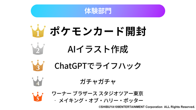 今年はAI(人工知能)を使った体験も台頭し、使いこなして楽しんでいるZ世代男子も多くみられました。ノミネートにはスポーツ観戦やリラクゼーションなども挙げられ、体験の場はリアルとデジタル両方に広がっています。体験についても、動画や写真、SNSで共有して楽しめることが重要です。