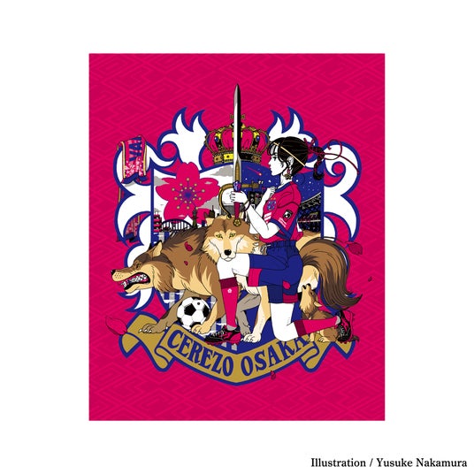「僕も暮らす大阪がホームグラウンドのサッカーチーム『セレッソ大阪』のエンブレムを元にアレンジしたイラストを描かせていただきました。狼はロビーとマダム・ロビーナと色は同じですが子狼も合わせ、目的は同じだけど多様なセレッソのサポーター層を表現しています。一緒に戦う12人目のメンバーであるサポーターの皆さまにとって、戦いの夜が明けて勝利の光る朝が来ますように」
