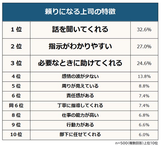 ・頼りになる上司の特徴1位は「話を聞いてくれる」