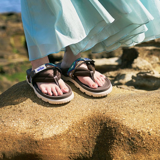 今回は、これまでのコラボとは違った鼻緒タイプのサンダルで、軽量性とクッション性を両立させたSHAKAの人気モデル「CAMP BAY PARA BF(キャンプベイパラBF)」をベースに、リゾートシーンでゆったりと過ごすのに最適なコラボサンダルを制作しました。