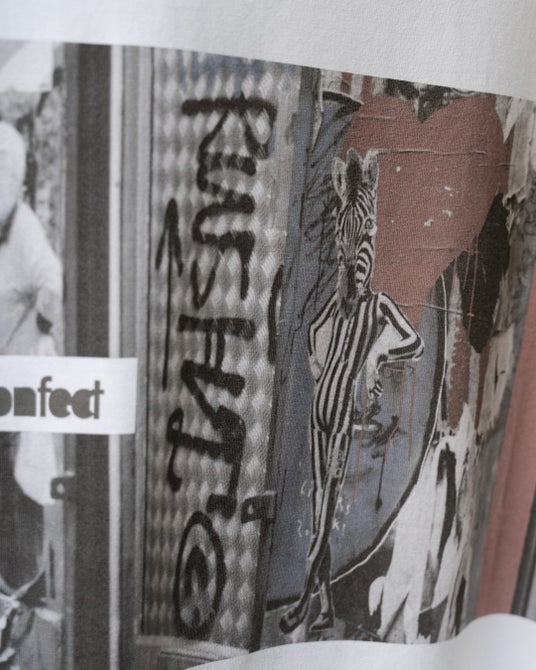 この度、森下氏の壁コレに魅了されて、CONFECTのスタイルに合う、程良いアートピースを加えるような存在になればとTシャツを別注オーダーしました。