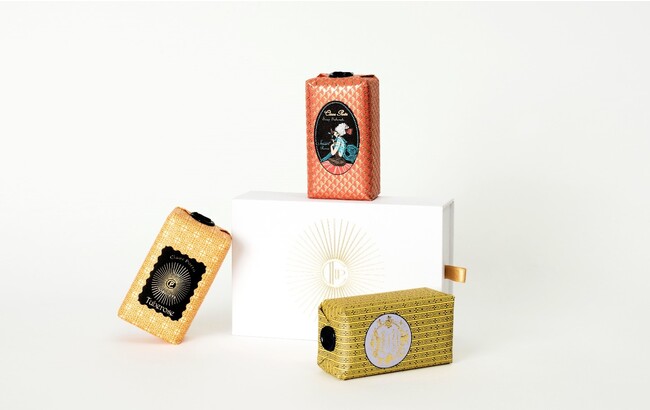 クラシコ コレクションからフローラルな香りの 3 種類のソープをセレクトしたこのギフトボックスはSMART(スマート)の情熱的なバラのアロマ、フローラルで繊細なBLACK SUNBURST(ブラック サンバースト)、香り高いLAVANDRE(ラベンダー)をお楽しみいただけます。カラフルなソープからはパッケージの着想源となったベル エポック時代の華やかさが垣間見られます。