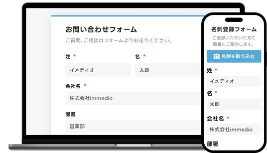 immedio Formsは名刺情報を正確に読み取り、そのままフォーム入力に反映できるため、展示会の接客フローに自然に組み込め、現場の生産性向上に貢献しています。