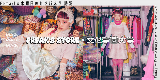 株式会社デイトナ・インターナショナルが運営する「FREAK'S STORE(フリークス ストア)」は、文化学園大学と産学連携プロジェクトとして、サステナブルをテーマに制作した学生の企画商品化・受注販売及び、廃棄商材を利用したアップサイクルをテーマとした作品を制作。3月18日(土)からはじまった「東京クリエイティブサロン日本橋2023」内の~ファッションを通してサステナブルとは何か~を考えるイベントコンテンツ「THAT'S FASHION WEEKEND」でローンチしました。学生企画商品のビジュアルには「水曜日のカンパネラ」の二代目主演/歌唱担当、詩羽さんをモデルとして起用。コミュニケーションメディア「FREAK MAG.」では詩羽さんのインタビュー記事も公開中。