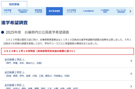 8~9月には大学別の合格高校ランキングを順次掲載予定。9月末~10月初旬ごろに進学希望調査の結果、2月には推薦入試、一般入試の各出願倍率を掲載するほか、関連のニュースも随時アップします。志望校選びから結果まで、引き続きトータルでサポートします!