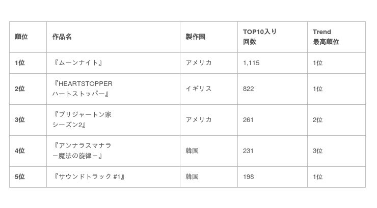 話題の海外ドラマでは『ムーンナイト』が1位を獲得。鑑賞したユーザーからは、「オスカー・アイザックの演技がすごい!一気にファンになりました」「純粋なヒーローではないところもまた魅力的。続編が楽しみ。」といった内容のレビューやコメントが寄せられています。
