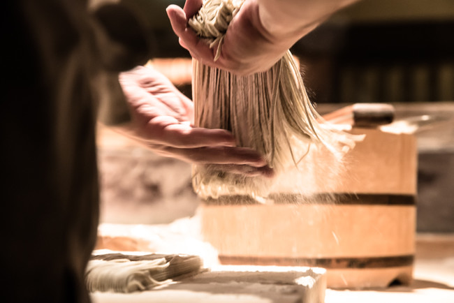 ブッシュ元大統領と小泉元首相の「居酒屋会談」や、映画監督クエンティン・タランティーノの「Kill Bill」のシーンのモデルとなったことで知られる「権八 西麻布」。2021年9月に20周年を迎え、日本国内はもちろん、海外のお客様からもご愛顧いただいております。厳選した国産蕎麦の実を使用し、毎朝石臼で丁寧に挽いた蕎麦粉を職人が手打ちする蕎麦や、備長炭で丁寧に焼きあげる串焼き、揚げたて熱々の天ぷらなど、こだわりの料理を独自のアレンジで提供しております。「権八」の名前は、歌舞伎の「白井権八」に由来しています。