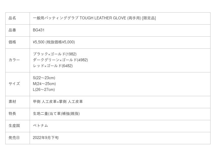【TOUGH LEATHER GLOVE BG431】があらゆる打者へ安心感を提供するとともに独自性を発揮します。