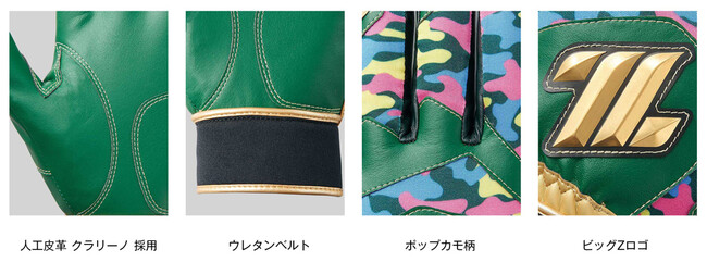 甲側にカラフルなポップカモ柄を採用。グラウンドで目立つこと間違いなし!