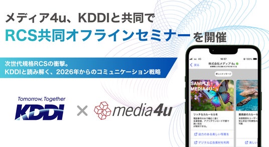 株式会社ファブリカホールディングスの完全子会社、株式会社メディア4u(本社:東京都港区、代表取締役社長:岩館 徹、以下 メディア4u)は、KDDI株式会社(本社:東京都港区、代表取締役社長:松田 浩路、以下 KDDI)と共同で、2026年1月29日(木)に次世代メッセージング規格「RCS(Rich Communication Services)」をテーマとしたオフライン形式のセミナーを実施します。
