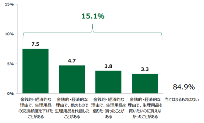 15.1%:過去1年に経済的に何らかの不便を経験(交換頻度下げ、代替品利用、買えない等)