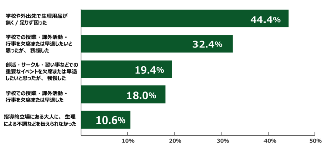44.4%:学校や外出先で生理用品が無く・足りず困った