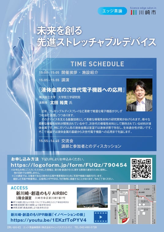 「新川崎・創造のもり」の拠点が持つ先端技術に関連した研究開発等の最新動向や活用をテーマとして、技術者や研究者、新規事業担当者向けにセミナーを複数回実施するものです。