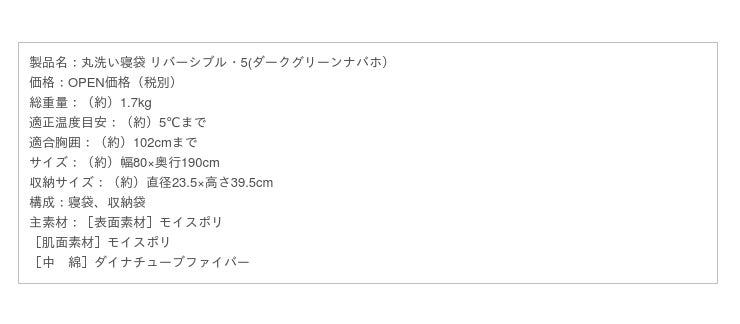 【 丸洗い寝袋 リバーシブル・5(ダークグリーンナバホ)】 https://www.logos.ne.jp/products/info/5180