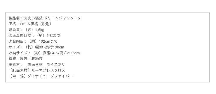 【 丸洗い寝袋 ドリームジャック・5 】 https://www.logos.ne.jp/products/info/5181