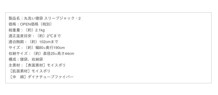 【 丸洗い寝袋 スリープジャック・2 】 https://www.logos.ne.jp/products/info/5182