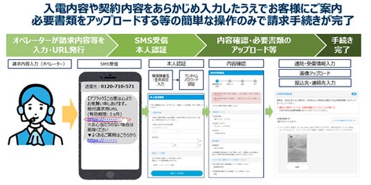 当社は、給付金請求手続きをオンラインで完結できる「給付金デジタル請求サービス」に加え、デジタルを苦手とするお客様にも同サービスをご利用いただけるように電話でサポートする「電話デジタル請求サービス」も提供しています。本サービスは、電話で給付金請求のご連絡をされたお客様に対して、コールセンターのオペレーターが項目の入力をサポートし、「給付金デジタル請求サービス」のお手続きをご案内することで、お客様は必要書類をアップロードする等の簡単な操作のみで給付請求の手続きが完了する仕組みです。