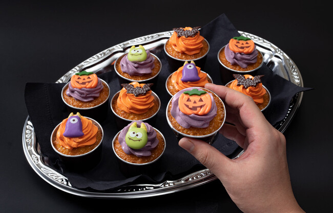 自社パティスリーがひとつひとつ丁寧に仕上げたハロウィン仕様のカップケーキ。
