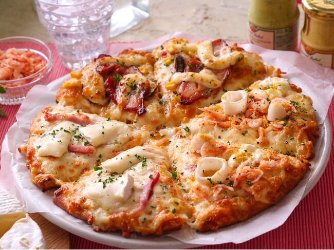内容:・ボッタルガと桜海老のシーフードピザ ・カマンベールとベーコンのピザ ・テリヤキチキン