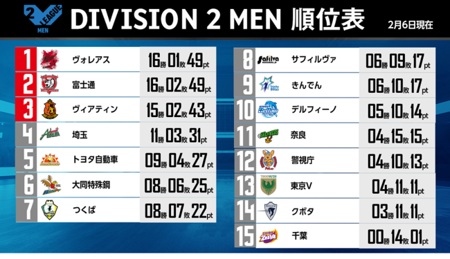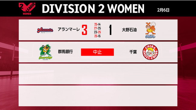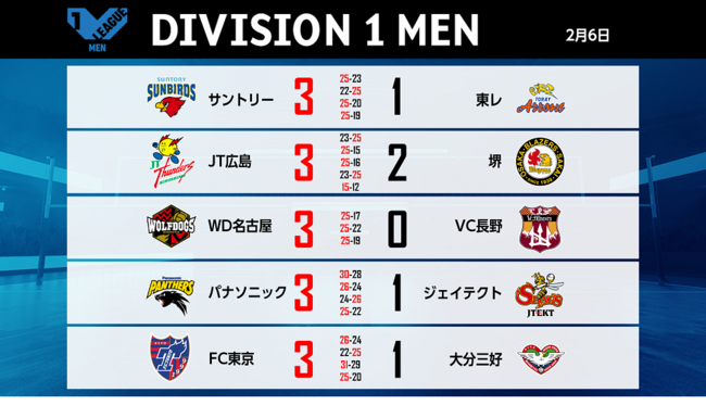 バレーボール国内最高峰リーグ V.LEAGUE【2月6日の試合結果】
