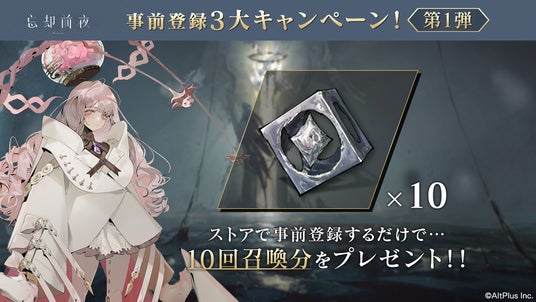 第一弾として、各アプリストア(App Store、Google Play)で事前登録いただいた皆様へ、本作の正式リリース時にご利用いただける10回分の召喚アイテム『ヘブンズコア』をプレゼントいたします。