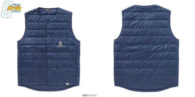 「インナーベスト」は、「地球連邦軍モデル」と「ジオン公国軍モデル」の2種展開。左胸部分にそれぞれのマークが入るデザインで、シンプルで着回しのしやすさが魅力です。ジャケットなどのインナーとしてはもちろん、シャツやパーカーなどの上から羽織ものとしても着られる万能なアイテムです。