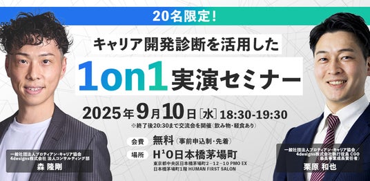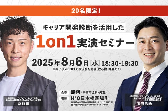 このたび、8月6日(水)18:30より、代表理事/法政大学キャリアデザイン学部 教授・田中研之輔が監修を務める「キャリア開発診断」を活用し、“使える対話”へとつなげる1on1の進め方を実演形式で紹介する対面セミナーを開催いたします。ご参加の皆様には、事前に診断を無償体験いただき、当日は結果をもとにした対話をリアルに体感していただきます。1on1の運用に課題を感じている方、人事施策のブラッシュアップを図りたい方におすすめの内容です。