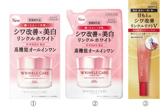 コーセーコスメポート株式会社(本社:東京都中央区、代表取締役社長:小林 孝雄)は、エイジングケア※3 ブランド『グレイスワン』から、シワ改善しながら美白※2ケアできる薬用オールインワンジェル「リンクルホワイトジェル」と金属マッサージヘッド付きの「リンクルケア リンクルリフトV エッセンス」(2品目3品種、ノープリントプライス)【医薬部外品】を2025年2月21日より全国の量販店・ドラッグストアを中心に発売します。
